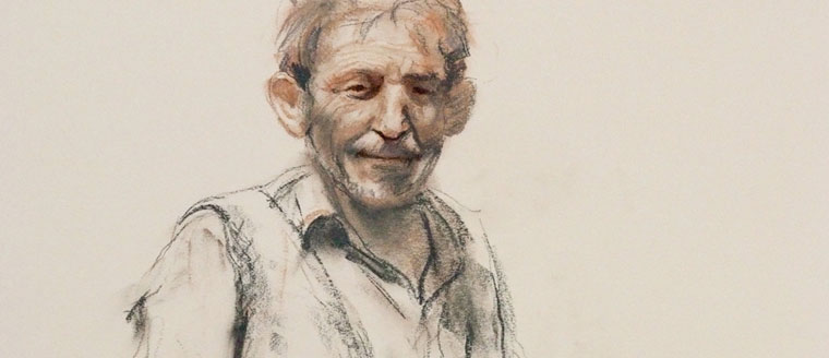 him without a pencil, charcoal or paint brush in hand.